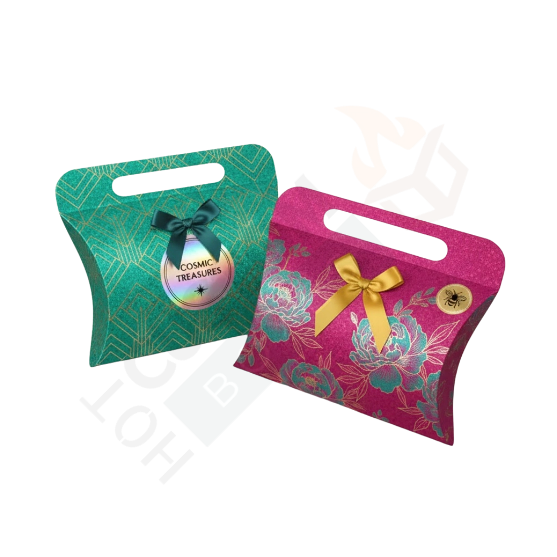 Our delightful packages transcend their utility as cosmetic containers and transform into charming gift boxes for any occasion. Our boxes in pillow shapes are a thoughtful packaging solution for gifts and giveaways. Pillow boxes bulk are functional and affordable which makes them an excellent choice for any business.